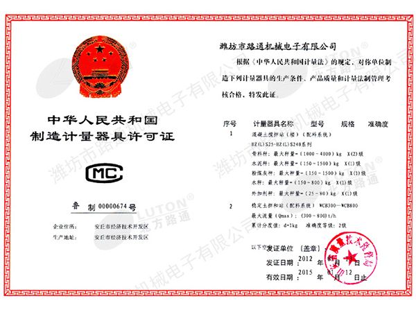 《制造計量器具許可證》混凝土、穩(wěn)定土